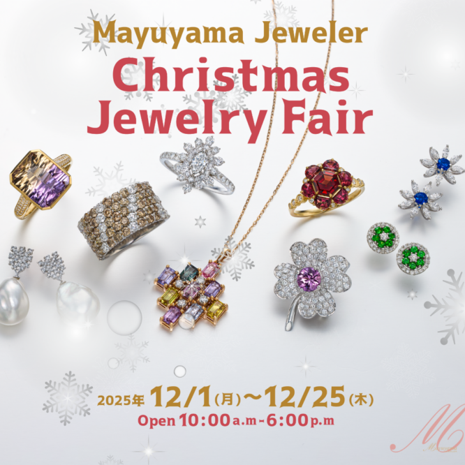【2025.12.1~12.25】Christmas Jewelry Fair 開催のお知らせ マユヤマジュエラーでは今年もクリスマスフェアを開催いたします 心躍る、色とりどりのジュエリーを多数ご紹介しております ぜひご友人、ご家族お誘い合わせの上、ご高覧くださいますよう、心より